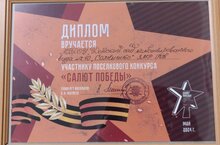 Нам есть, кем гордиться!!!Бүген балалар бакчасында Бөек Ватан сугышында Җиңүнең 79 еллыгына багышланган бәйрәм-патриотик чара узды. Әзерлек төркемнәре балалары бабаларыбыз һәм таниләребезнең биюләре белән бергә хәрби җыр-попурри башкардылар:" Катюша"," по дорогам фронтовым"," Эх, путь дорожка, фронтовая"," Клен зеленый"," От Москвы до Бреста"," Севастопольский вальс", " В полях над вислой сонной... һ.б. сюжет имитациясе сугыш кырыннан яраланганны алып чыгып кит безнең шәфкать туташлары сугышчы - балаларга беренче ярдәм күрсәттеләр. Шаман (Ярослав Дронов) җырына музыкаль композиция Это мой бой безнең батыр ир - ат геройларыбызның гамәлләре белән сугарылган, алар хәзер алгы сызыкта катлаулы бурычларны үтиләр. Безнең малайлар Ватанны саклаучыларның кәефен һәм патриотизмын күрсәттеләр. Шигырьләрне аңлаешлы уку, биюләрне төгәл башкару өлкән, урта һәм кече төркем балаларына тәэсир итә. Уеннар: командирга хәбәр җиткерегез, снайперлар һ. б. осталык күрсәттеләр, ярышлар керттеләр рух. "Җиңү Көнендә" җыры астында бәйрәм маршы белән тантаналы чара тәмамланды. "Дан Аллеясы" баннерына балалар чәчәкләр: тюльпаннар, кыярлар, нарцисслар алып килделәр. Җиңү өчен спаси - бабайларыбызга рәхмәт!!! Горурланырлык кеше бар!!!