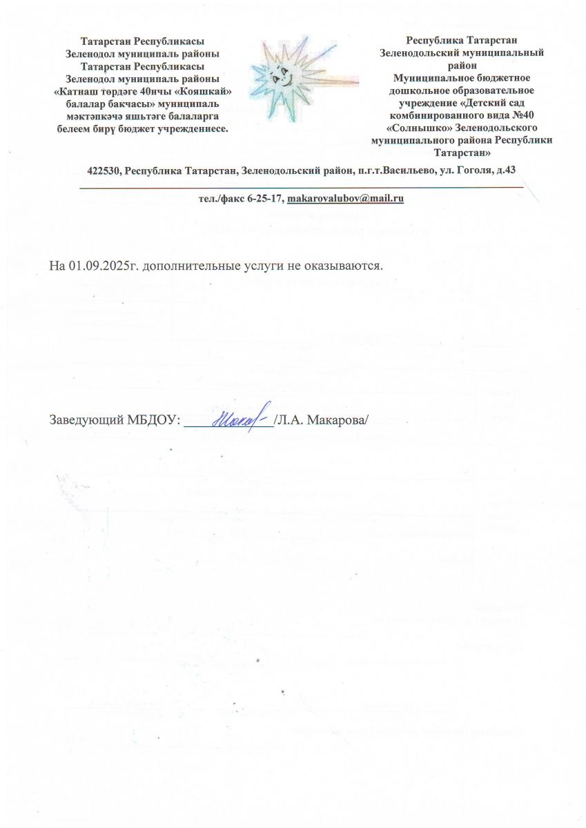 Муниципальное бюджетное дошкольное образовательное учреждение "Детский сад комбинированного вида №40 "Солнышко" Зеленодольского муниципального района РТ"/Татарстан Республикасы Зеленодол муниципаль районы "Катнаш төрдәге 40 нчы "Кояшкай" балалар бакчасы" муниципаль мәктәпкәчә яшьтәге балаларга белем бирү бюджет учреждениясе"