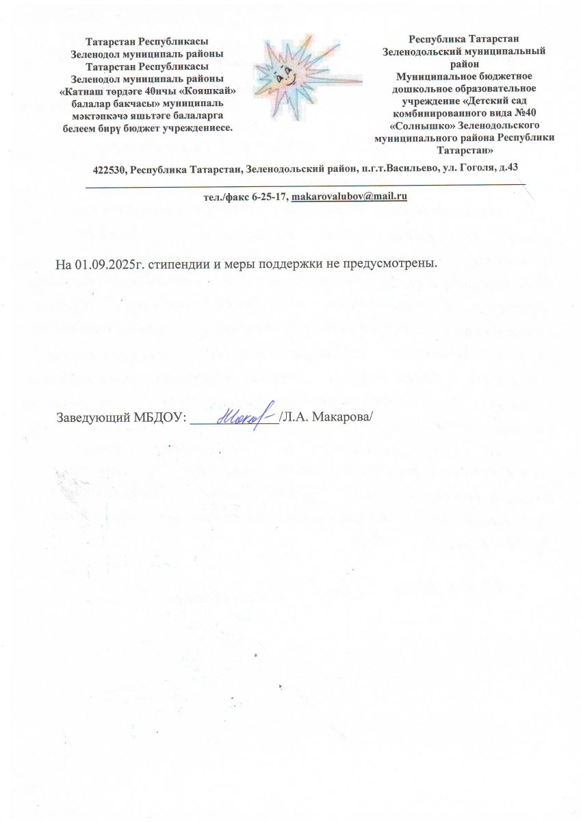 Муниципальное бюджетное дошкольное образовательное учреждение "Детский сад комбинированного вида №40 "Солнышко" Зеленодольского муниципального района РТ"/Татарстан Республикасы Зеленодол муниципаль районы "Катнаш төрдәге 40 нчы "Кояшкай" балалар бакчасы" муниципаль мәктәпкәчә яшьтәге балаларга белем бирү бюджет учреждениясе"