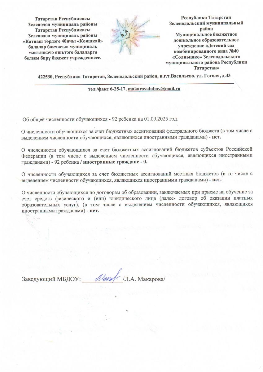 Муниципальное бюджетное дошкольное образовательное учреждение "Детский сад комбинированного вида №40 "Солнышко" Зеленодольского муниципального района РТ"/Татарстан Республикасы Зеленодол муниципаль районы "Катнаш төрдәге 40 нчы "Кояшкай" балалар бакчасы" муниципаль мәктәпкәчә яшьтәге балаларга белем бирү бюджет учреждениясе"