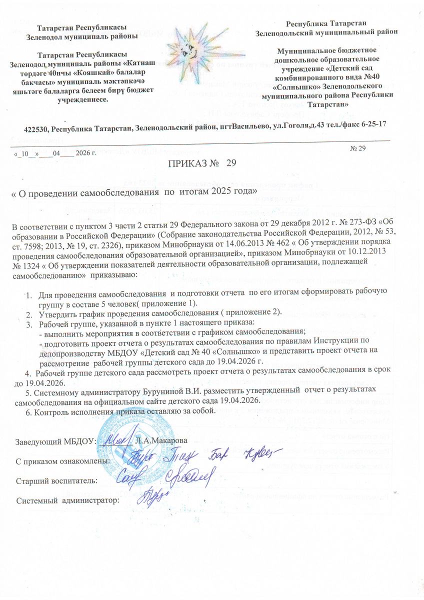 | Короткое название: | МБДОУ "Детский сад комбинированного вида №40 "Солнышко" ЗМР РТ" |