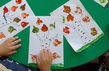 Балалар белән "Көзге яфраклар коела" исеме астында рәсем ясадык һәм көз турында сөйләшү үткәрдек.