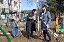 Коллектив нашего детского сада, в рамках двухмесячника, дружно вышел на субботник по очистке территории.