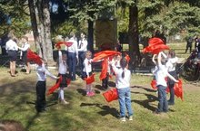 Воспитанники нашего детского сада выступали на памятнике в п. Октябрьский с танцами и стихами ко "Дню Победы" 9 мая.