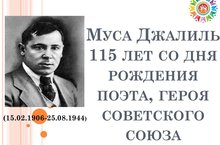 115 лет со дня рождения поэта Мусы Джалиля/Шагыйрь Муса Җәлил тууына 115 ел 15.02.2021