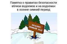 ПАМЯТКА о соблюдении правил безопасности на водных объектах в осенне-зимний период 12.11.2018