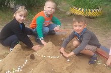 В сказочной Песочной стране дети встретились с Песочной Феей, которая познакомила их с волшебным песком. Вместе они играли в песок, нашли спрятанные игрушки, определяли что за предмет оставил след и изучали свойства песка. В конце праздника провели конкурс на лучший песочный город. За что их похвалила Песочная Фея и угостили сладостями.
