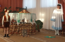 В детском саду прошла "Недели педмастерства" на тему "Развитие речи у детей дошкольного возраста средствами театрализованной деятельности в условиях двуязычия". Байбикова А.Г. -воспитатель татарского языка представила педагогам исценировку сказки "Теремок" .
