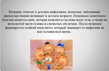 Вакцинация:Основной и наиболее эффективный метод профилактики ветряной оспы — вакцинация. Дети, которые не переболели ветряной оспой, должны быть вакцинированы в соответствии с национальным календарем прививок.
