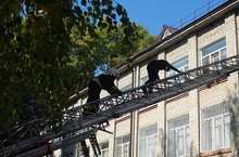 10 сентября в школе прошли учения по противопожарной безопасности в рамках месячника «Безопасности жизнедеятельности». Ребятам показали эвакуацию человека из задымлённого помещения при помощи лестницы на пожарной машине и тушение пожара.