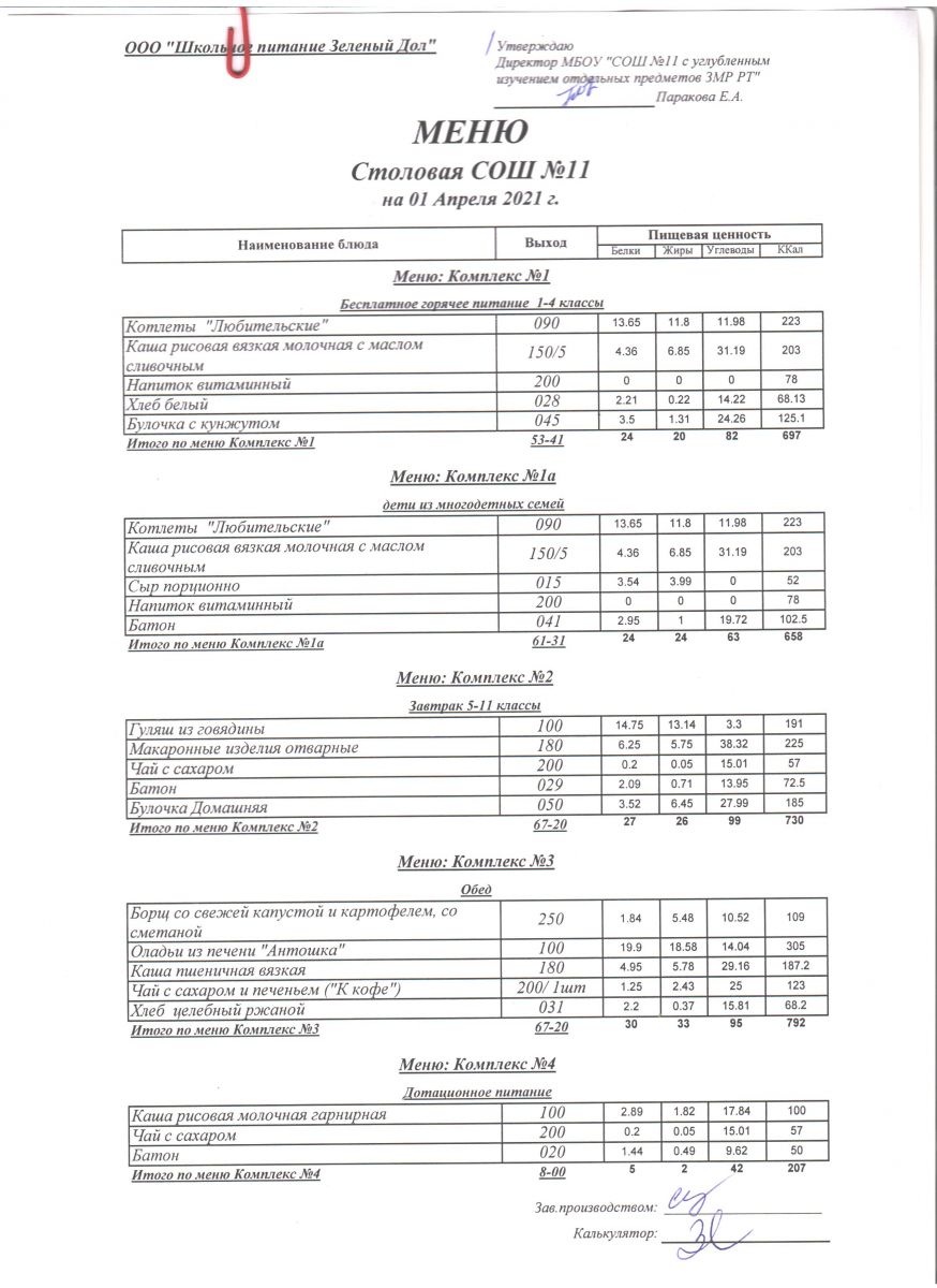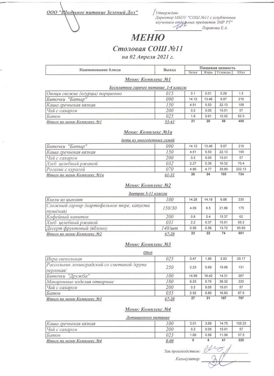 Школьное меню