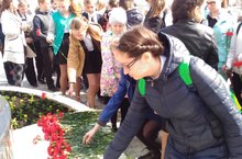 Учащиеся школы приняли участие в акции "Дерево Победы". Школьники ухаживают за саженцами сирени, высаженными в день открытия Сквера им. Героя Советского Союза Н.Н. Алтынова.