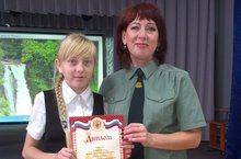 Сегодня в рамках слета ДОО "Зеленый патруль" заместитель директора филиала ФБУ «Рослесозащита» - «Центр защиты леса Республики Татарстан» в г. Зеленодольск Ефременкова Венера Равилевна вручила Диплом ученице 6Г класса нашей школы Алексеевой Алёне за I место в Муниципальном конкурсе риунков "Сбережем леса России". Поздравляем Алёну с победой!