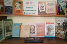 205 - летию со дня рождения И.С. Тургенева оформлена выставка произведений писателя. На ней представлены такие произведения, как цикл рассказов «Записки охотника», рассказы «Муму», «Бежин луг», повести «Первая любовь», «Ася», романы «Дворянское гнездо», «Отцы и дети», «Накануне», «Рудин».