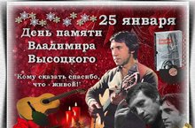 25 гыйнварда яраткан актер, шагыйрь һәм җырчы Владимир Высоцкийның тууына 85 ел тула. Аңа буйсынмаган биек таулар юк. Аның иҗаты һәм тормыш юлы турында мәктәпнең 8нче сыйныф укучылары белерлек вакыт юк. В.Высоцкий истәлегенә «кызыл Җилкәннәр» мәдәният сарае китапханәсендә «Өзелгән очыш»әдәби – музыкаль чарасы багышланган.