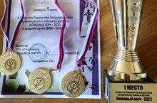 Турнир "Кожаный мяч" - самое массовое соревнование по футболу среди детских команд на территории России. Несколько дней шёл турнир среди шестиклассников школ города. И вот финал ! Сборная учеников нашей школы получает медали и кубок за почётное 1 место !