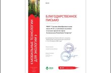 Благодарность школе за активное участие во Втором общероссийском экоуроке в рамках общероссийского проекта "Мобильные технологии для экологии".