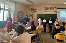 21 марта учитель истории и обществознания Калятьева Людмила Борисовна провела открытый урок в 6 А классе по обществознанию и мастер - класс на Республиканском семинаре в рамках стажировки: "Эффективное использование ИКТ на уроках социально-гуманитарного цикла и во внеурочной деятельности для развития интеллектуальных способностей и навыков ХХI века у учащихся" на базе МБОУ "СОШ № 15 ЗМР РТ"