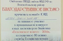 21.10.16 состоялся городской конкурс "Безопасное колесо - 2016" , где учащиеся 4А класса приняли активное участие. Ребята готовили творческий номер к 80-летию Госавтоинспекции. Научились как оказывать первую медецинскую помощь, стали разбираться в правилах дорожного движения. Но самым трудным оказалось - это фигурное вождение и управление велосипедом.