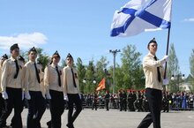 Контр-адмирал Дмитрий Дмитриевич Рогачев һәйкәле янында тантаналы линейка бишенче, алтынчы сыйныф укучылары өчен Җиңү көне алдыннан уздырыла.