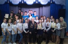Встреча учащихся 6А класса с Федотовой Любовь Андреевной - труженицей тыла и женой краеведа и писателя города.