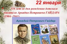 22 января – день рождения Аркадия Петровича Гайдара (настоящая фамилия – Голиков), автора замечательных книг, человека, прожившего короткую, но яркую жизнь, любимого писателя советской детворы, летописца непростого этапа нашей истории. 22.01.2025