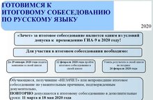 Для допуска к ОГЭ девятиклассникам в 2020 году придётся получить "зачёт" по итоговому собеседованию. Основной день проведения в 2020 году - 12 февраля. Итоговое собеседование проводится во вторую среду февраля. Пункт 16 порядка проведения ГИА-9. Для получивших "незачёт" или не явившихся по уважительным причинам предусмотрены ещё 2 дня - 11 марта и 18 мая. Демоверсия итогового собеседования 2020: 4ege.ru/gia-po-russkomu-jazyku/58250-demoversiya-itogovogo-sobesedovaniya-2020.html 12.02.2020