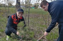 Сегодня выпускники школы 1999 года и девятиклассники приняли участие в акции "Сад памяти". Высажено 18 елок.