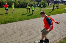 В Свияжской школе прошел турнир по футболу. Парни играют, девочки болеют.
