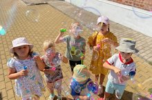 В детском саду прошел праздник мыльных пузырей на свежем воздухе.