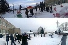 После продолжительного снегопада, самоотверженным трудом учителей, учащихся и обслуживающего персонала территория школы была полностью очищена от снега.