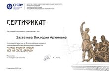 Захватова В. стала участницей Всероссийского конкурса творческих работ "Лучше Родины нашей нет на свете, друзья" 26.01.2022
