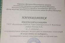 Поздравляем творческий коллектив за победу в конкурсе "Солдат войны не выбирает", посвященному 30-летию вывода войск из Афганистана 12.02.2019