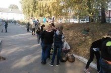 Учащиеся и педагоги школы убрали листья с газонов. Фото