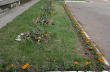 На школьном участке высажены сотни цветов.