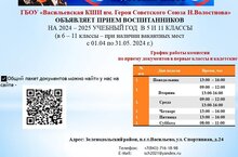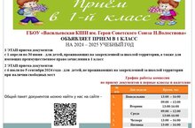 22.06.2024 в 10.00 ГБОУ "Васильевская КШИ им. Героя Советского Союза Н. Волостнова" проводит собрание для родителей будущих первоклассников. 22.06.2024