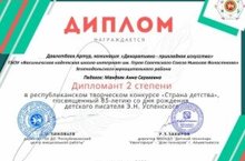 Детский технопарк "Кванториум" - Дом пионеров" г.Альметьевска подвел итоги республиканского творческого конкурса «Страна детства», посвященный 85-летию со дня рождения детского писателя Э.Н. Успенского. Кадет 6 "И" кл Давлетбаев А. . занял почётное 2 место. 22.05.2023