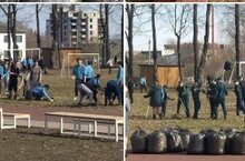 Кадеты Васильевской КШИ провели субботник на территории нового стадиона. 17.04.2023