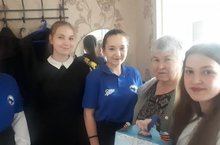 Члены школьного отряда " Волонтеры Победы" в предверии Дня Победы поздравили вдов участников ВОВ