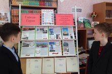 В рамках весенней недели добра заведующая школьной библиотекой Л.Д.Фасхутдинова проводит ознокамительную беседу с учащимися "Города-Герои", посвященная