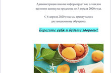 Администрация школы информирует вас о том, что весенние каникулы продлены до 5 апреля 2020 года.С 6 апреля 2020 года мы приступаем к дистанционному обучению.