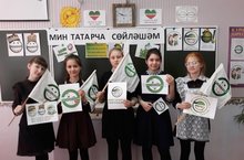 Мин татарча сөйләшәм" акциясе дәвам итә. Укучылар бу акциядә бик теләп катнашалар. Менә бүген туган тел укытучысы Төхбәтуллина Г.Д. 7 нче сыйныф укучылары белән “Мин татарча сөйләшәм” дип исемләнгән дәрес үткәрде. 4 нче сыйныфлар “Мин татарча сөйләшәм” акцисендә. Укучылар бер-берсе белән татарча аралашып, диалоглар төзеделәр