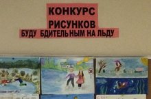 В фойе школы были выставлены рисунки школьного этапа муниципального конкурса "Буду бдительным на льду"