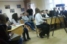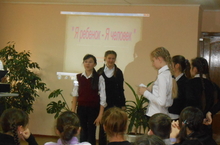 Чугунова Анна, ученица 1 б класса представляла Васильевскую школу №2. Все команды рассказывали о своем "самом лучшем классе". С Аней вместе выступали учащиеся 7 а класса.