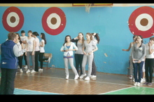 Учащиеся демонстрируют навыки по строевой подготовке, знания специфики различных родов войск.