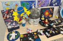 Наши талантливые ученики продемонстрировали свои художественные работы, отражающие увлекательный мир космоса, звезд и планет. Представлены яркие рисунки, аппликации, модели ракет и космических кораблей, а также интересные творческие проекты.