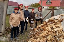 Юнармейцы пришли на помощь матери мобилизованного земляка Сание Юсуповне, помогли в укладке и переноске дров на зиму.