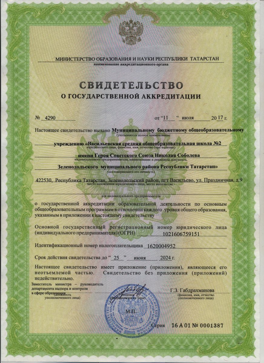 Муниципальное бюджетное общеобразовательное учреждение "Лицей №2 имени Героя Советского Союза Николая Соболева пгт.Васильево Зеленодольского муниципального района РТ"/"Татарстан Республикасы Зеленодольск муниципаль районы Васильево бистәсенең Советлар Союзы Герое Николай Соболев исемендәге 2 нче лицей" муниципаль бюджет гомуми белем бирү учреждениесе