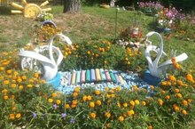 Мәктәп яны бакчасында эш дәвам итә. Укучылар график буенча чиратлап бакчада хезмәт куялар.Су сибәләр, түтәлләрне йомшарталар, чүптән арындыралар. Тырышлыкның нәтиҗәсе күңелле: бакчабыз аллы-гөлле чәчәккә күмелгән.