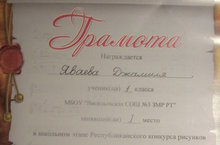 Яваева Джамиля - ученица 1 класса ВСОШ №3, заняла I место в школьном этапе Республиканского конкурса рисунков "Будь бдительным на льду!" Учитель: Гимадиева Ф.Ф.